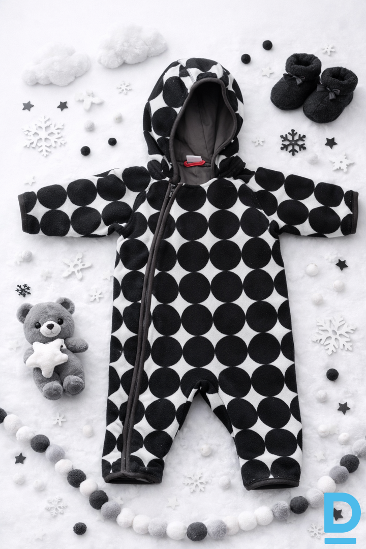 Продаю очень красивый и качественный детский зимний комбинезон (боди) Lindex Baby в современном черно-белом дизайне. Изготовлен из мягкого и теплого флисового материала, приятного для кожи малыша и обеспечивающего комфорт в холодную погоду. Эта модель идеально подходит для зимы, прогулок в коляске, в автокресле и для повседневной носки дома. Комбинезон легкий, теплый и очень удобный, с практичным капюшоном и застежкой-молнией, что облегчает его одевание. ✨ Преимущества: Высококачественный полиэстеровый флис - очень мягкий и теплый Современный и стильный дизайн (черные точки на белом фоне) Капюшон для дополнительного тепла Практичная молния во всю длину Очень хорошее состояние - как новый, без дефектов Оригинальный бренд LINDEX Baby ? Размер: 62 (0-3 месяца) ? Уход: Машинная стирка при низкой температуре Быстро сохнет, сохраняет форму и цвет ? Идеально подходит для стильного и теплого малыша - премиальный внешний вид по очень доступной цене! ? Возможна доставка службами Omniva / DPD / Parcel Machine или личная встреча. |